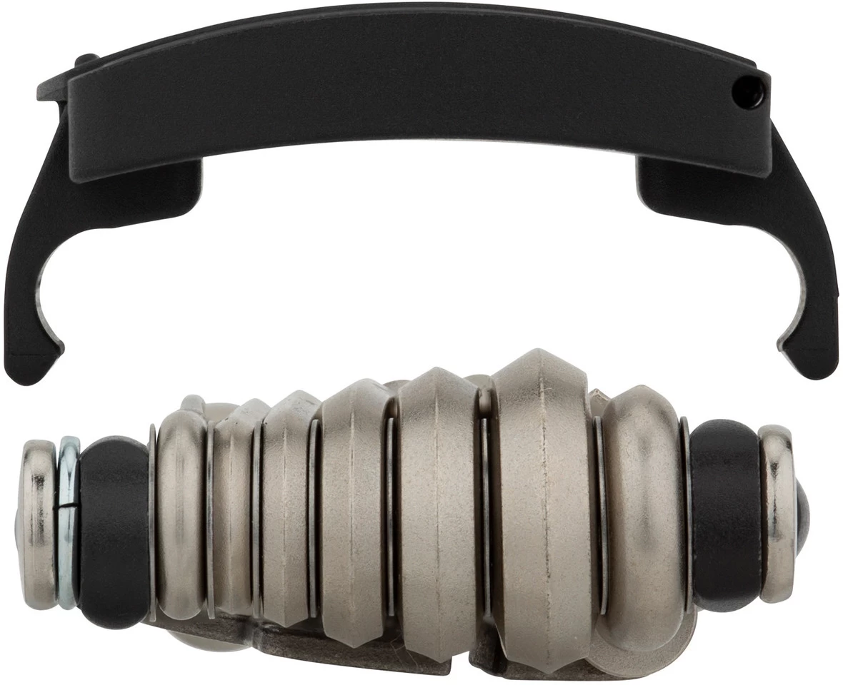 La herramienta multiusos M20 de crankbrothers es una mini herramienta compacta con 20 funciones que puede ayudarte a salir de apuros en caso de avería. Además de muchos tipos de herramientas útiles, la herramienta también tiene una caja de almacenamiento extraíble que ya viene con un conjunto de cinco parches tubeless. La herramienta está hecha de acero duradero.