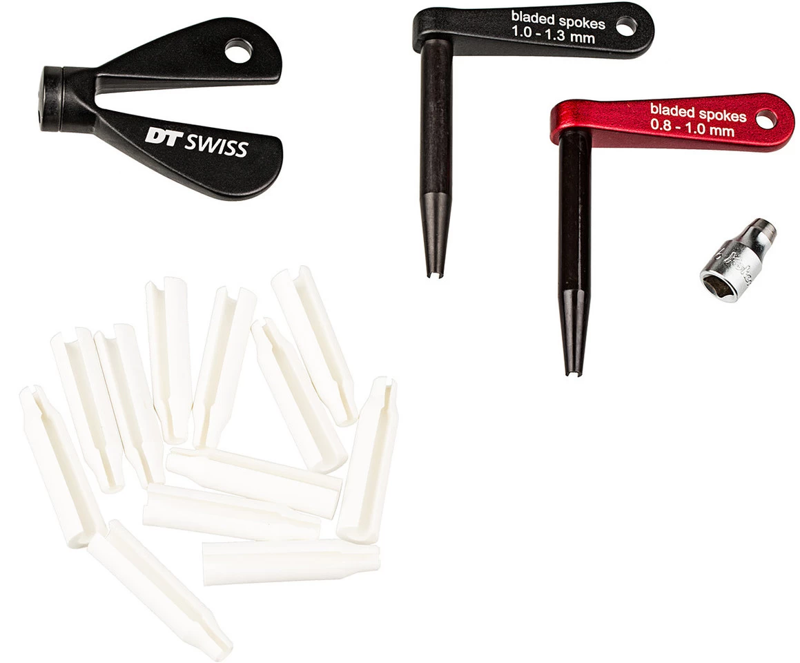 Volumen de envío:1 x Llave Torx DT Swiss Spokey1 x Soporte de radios DT Swiss Aerolite®1 x Soporte de radios DT Swiss New Aero®1 x Llave de espiga de radios DT Swiss12 x Soporte de espiga DT Swiss