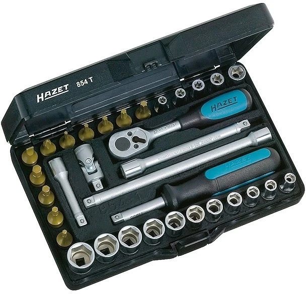 Volumen de envío:1 x Juego de llaves de vaso Hazet 33 piezas1 x Caja plástica Hazet