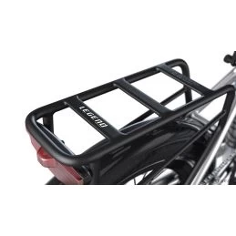 Portabultos trasero de serie para el transporte de objetos y apto para silla de niño con una carga máxima soportada de 27 kg. Anclaje KLICKfix delantero para cesta u otros accesorios.