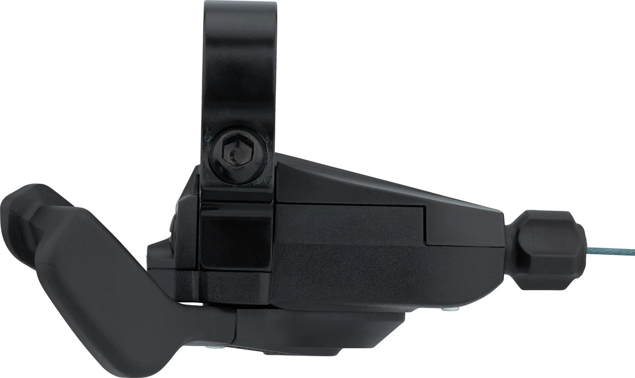 La Shimano Alivio SL-M3100 Mono está diseñado como maneta de cambios izquierda de 2 velocidades para bicicletas de montaña con cambios de 9 velocidades y cuenta con una sola palanca. Se puede utilizar tanto para subir como para bajar de marchas, lo que facilita el cambio de marchas. Gracias a la tecnología 2-Way-Release, el cable de cambio se libera bien presionando con el pulgar o tirando con el dedo índice. El modelo Rapidfire Plus también impresiona por su buena accesibilidad y su funcionamiento rápido y suave. Se sujeta al manillar mediante una abrazadera y tiene un ajustador de cable de cambios. La carcasa es de aluminio, la palanca es de una mezcla de acero y resina sintética. Se suministra un cable interior con revestimiento reductor de la fricción.