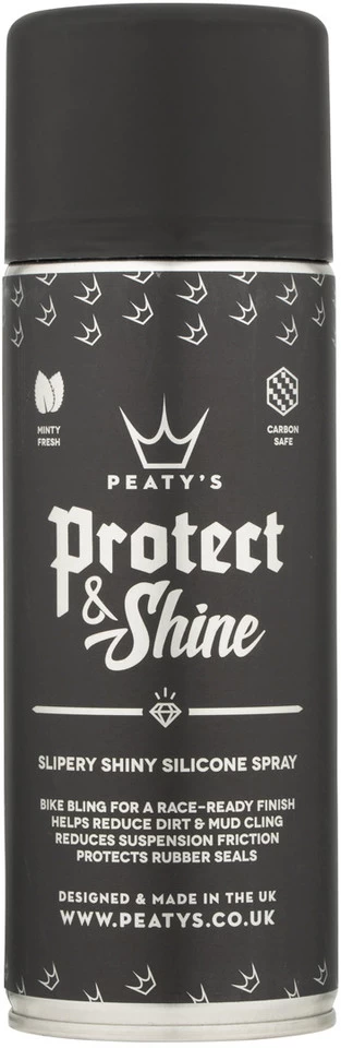 El spray de cuidado Protect & Shine de Peatys protege tu bicicleta con una capa de silicona y le da el brillo máximo. Esto la protege contra la desecación. Además, se reduce la suciedad futura. También la próxima limpieza será más fácil. ¡Menos esfuerzo de limpieza significa más tiempo sobre la bici!