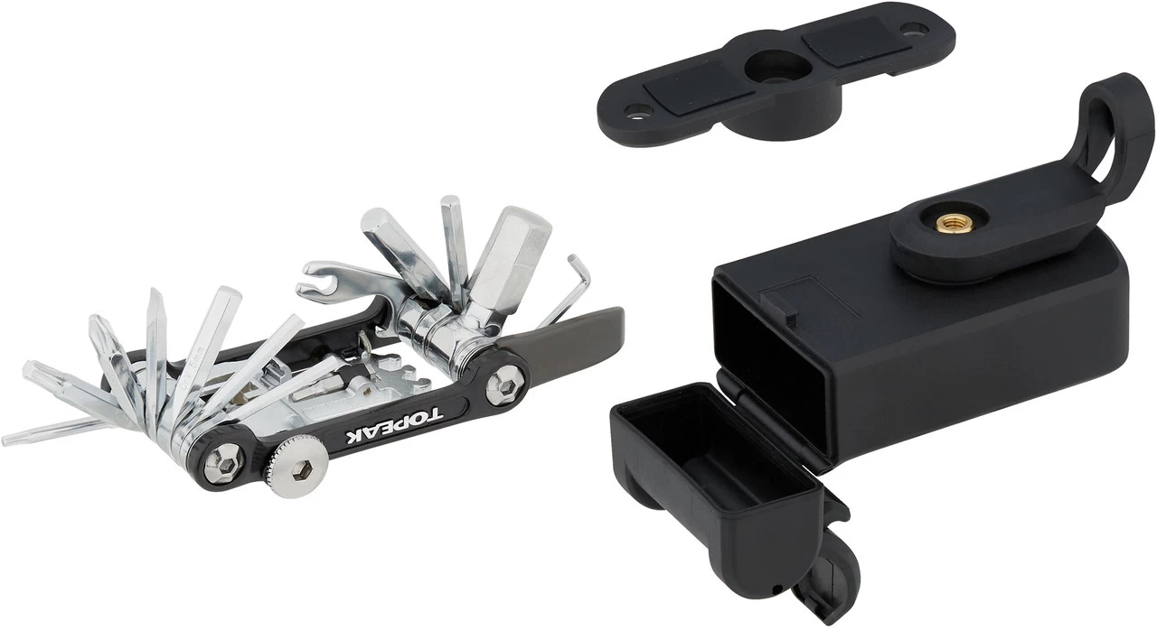 Volumen de envío:1 x Herramienta multiusos Multitool Topeak Mini 20 Pro1 x Transportcase Topeak Ninja Master+ ToolBox T201 x Case Topeak para Mini 20 Pro1 x Soporte Topeak Cage Mount1 x Soporte Topeak Frame Mount2 x Bridas de cable1 x Tornillo T152 x Tornillo hexagonal1 x Arandela1 x Arandela de muelle