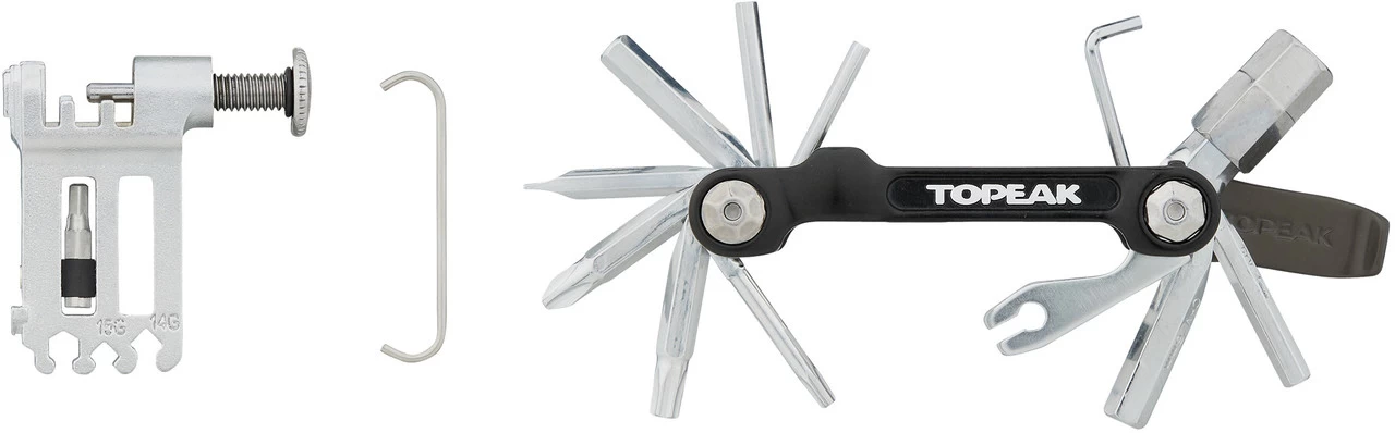 La Ninja Master+ ToolBox T20 de Topeak contiene con la Mini 20 Pro Multitool todas las herramientas que necesitas en la carretera – hasta en caso de que se te rompa la cadena. La práctica Multitool-Case se puede montar en cualquier lugar e incluso en cuadros pequeños con poco espacio.