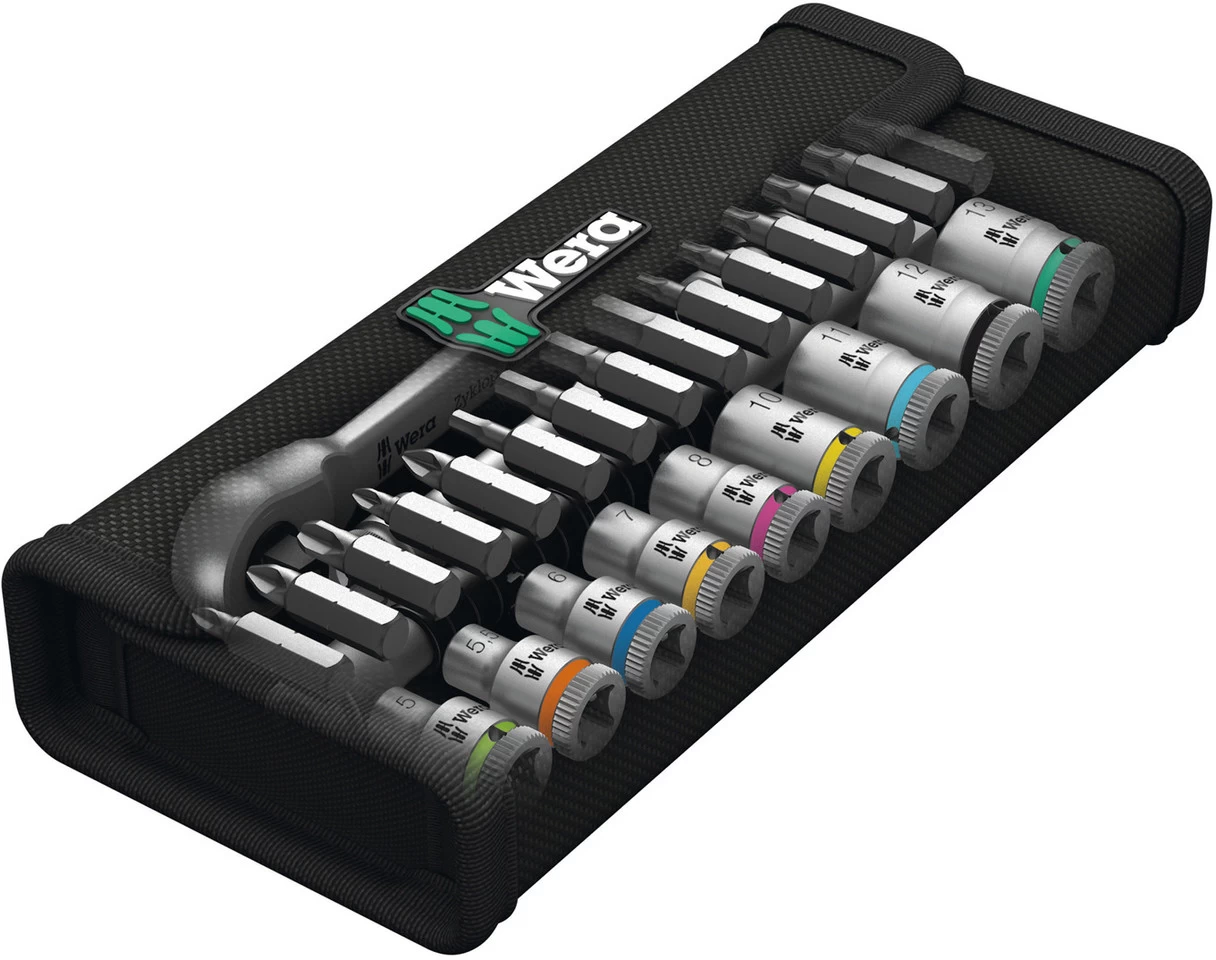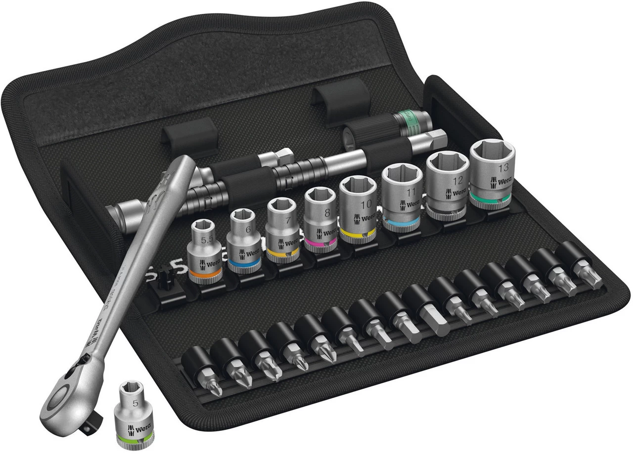 Wera ha inventado una sensación de sets completamente nueva. Hasta ahora, las carracas y los accesorios solían venir empacados en cajas metálicas robustas pero toscas y a veces pesadas. La caja textil compacta supone un alivio insospechado en cuanto a movilidad y necesidad de espacio. La misma cantidad de herramientas que se tenía que sujetar antes por el mango con al menos una mano, ahora viene en una caja compacta, que a su vez puede formar parte de un estuche de herramientas en el que se pueden transportar muchas otras herramientas. Ya no es necesario ir y venir varias veces para llevar herramientas de un lugar a otro. Y el peso significativamente reducido del set hace que sea mucho más cómodo de llevar que antes. Las superficies sensibles quedan bien protegidas al guardarse. La caja también es increíblemente robusta. La caja textil y las herramientas incluso resisten caídas sin daños.